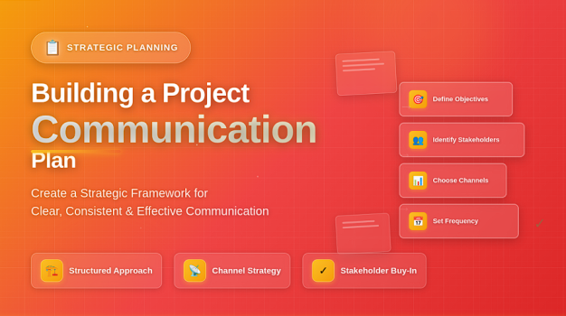 | 1. Objectives | Define what you want to achieve with communication — clarity, alignment, engagement, or reporting. | Set measurable goals (e.g., “100% stakeholder awareness of milestone status”). |