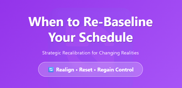 In simple terms, if your current schedule no longer represents the reality of your project, you re-baseline to realign planning with execution.